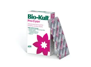 Το Bio-Kult Pro-Cyan είναι μία τριπλή φόρμουλα ειδικά σχεδιασμένη για να αντιμετωπίζει και να προλαμβάνει τις μολύνσεις του ουροποιητικού συστήματος, με cranberry, βιταμίνη Α και 2 επιλεγμένα στελέχη προβιοτικών.