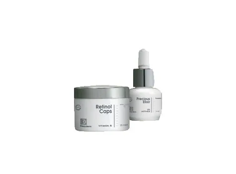 Σύστημα αντιγήρανσης και επανόρθωσης Κάψουλες Ρετινόλης – Ελιξήριο νεότητας 35% πιο σφριγηλό δέρμα Πρόσωπο – λαιμός Για κάθε ηλικία. Μελέτες: Δερματολογικά ελεγμένο. Χρήση: Tο βράδυ Βήμα 1ο: εφαρμογή του περιεχομένου μιας κάψουλας στο πρόσωπο και τον λαιμό με έμφαση στις ρυτίδες Βήμα 2ο: μετά 15΄ εφαρμογή του ελιξίριου στο πρόσωπο και τον λαιμό όπου παραμένει όλο το βράδυ, έκπλυση το πρωί. Δράση - Ενεργά Συστατικά: αναστροφή σημείων φωτο-, βιο- και χρονο- γήρανσης (ω-3, ω-6, ω-9 oils) αναγέννηση δερματικού ιστού (Retinol).