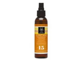 Το αντιηλιακό λάδι μη λιπαρής υφής APIVITA SUNCARE με SPF 15 και UVA 11 προσφέρει: αποτελεσματική προστασία από την UVA και UVB ακτινοβολία με φωτοσταθερό συνδυασμό φίλτρων και θαλάσσια λεβάντα βαθύ μαύρισμα με καρότο ενυδάτωση, θρέψη και διατήρηση της ελαστικότητας της επιδερμίδας με ελιά και ηλίανθο προστασία από τη φωτογήρανση και τις ελεύθερες ρίζες με θαλάσσια λεβάντα, σταφύλι, ρόδι, λυκοπένιο και Βιταμίνη Ε μοναδική αίσθηση χάρη στη μη λιπαρή υφή του απορροφάται γρήγορα, χωρίς να αφήνει λιπαρότητα Δεν περιέχονται χημικά συστατικά που έχουν κατηγορηθεί για αρνητικές επιδράσεις στην υγεία ή το περιβάλλον.