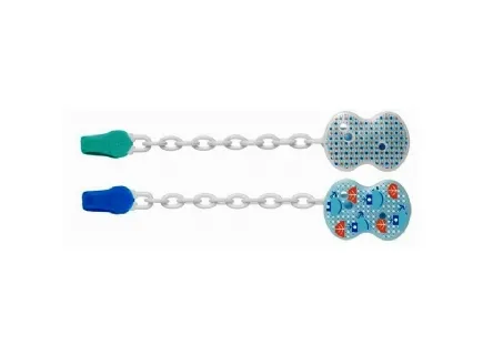 Κλιπ πιπίλας Chicco μπλε. Κλιπ πιπίλας με αλυσίδα. Για να μη χάνεται την πιπίλα και να παραμένει καθαρή. (04083)