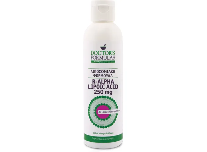 Το Doctor`s Formulas R-ALPHA LIPOIC ACID 250mg 300ml αποτελεί ένα συμπλήρωμα διατροφής λιποσωμιακής φόρμουλας σε μορφή πόσιμου διαλύματος.