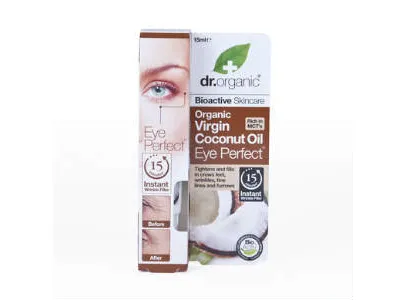 Το Organic Virgin Coconut Oil Eye Perfect της dr. organic είναι ένας ορός ματιών με παρθένο βιολογικό έλαιο καρύδας, θαλάσσια ενεργά συστατικά, καθώς και ένα μείγμα από φυσικά έλαια και εκχυλίσματα.