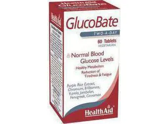 Τα δισκία GlucoBate έχουν σχεδιαστεί ειδικά χρησιμοποιώντας τα πιο ωφέλιμα θρεπτικά συστατικά και φυτικά εκχυλίσματα, που υποστηρίζουν τη διατήρηση των φυσιολογικών επιπέδων γλυκόζης στο αίμα, το μεταβολισμό και τα επίπεδα ενέργειας. Περιέχουν χρώμιο, που διατηρεί τη γλυκόζη σε φυσιολογικά για τον οργανισμό επίπεδα, αλλά και νιασίνη, βιταμίνη Β6 και βιταμίνη Β12, τα οποία βοηθούν στο φυσιολογικό μεταβολισμό της απόδοσης ενέργειας και μειώνουν την κούραση και την κόπωση. Ειδικότερα, η βιταμίνη Β6 συμβάλλει στον κανονικό μεταβολισμό του γλυκογόνου, το οποίο ρυθμίζει την απελευθέρωση της αποθηκευμένης γλυκόζης. Ακόμη, βιοτίνη και ψευδάργυρος εμπλέκονται στο φυσιολογικό μεταβολισμό μακροθρεπτικών συστατικών, συμπεριλαμβανομένου της χρησιμοποίησης των υδατανθράκων από το σώμα. Επίσης, τα δισκία GlucoBate συνδυάζουν φυσικά εκχυλίσματα βοτάνων, όπως καρελά, κανέλα, fenugreek, Jambolan και Banaba, τα οποία έχουν χρησιμοποιηθεί κατά το παρελθόν για τις ευεργετικές τους ιδιότητες στον έλεγχο του σακχάρου στο αίμα.