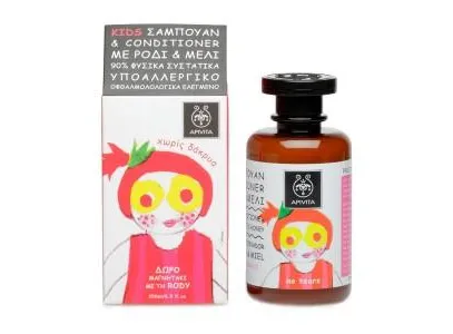 90% φυσικά συστατικά * Γρήγορα και αποτελεσματικά, καθαρίζει απαλά, αφήνοντας τα μαλλιά πολύ λαμπερά και ευκολοχτένιστα. * Ο συνδυασμός ρόδι με μέλι προσφέρει μοναδική ενυδάτωση Δεν περιέχει συνθετικά συστατικά που έχουν βλαβερές επιδράσεις στην υγεία και το περιβάλλον. Αποκλειστική καινοτομία: Η APIVITA αντικαθιστά το νερό στη γραμμή KIDS με καλέντουλα η οποία έχει καταπραϋντική δράση