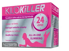 Το KiloKiller ALL-IN-ONE SLIMMING χάρη στην ειδικά μελετημένη σύνθεση του, συμβάλλει αποτελεσματικά στον έλεγχο του σωματικού βάρους έχοντας 4πλή δράση: