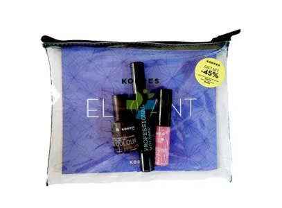 Korres "Beauty in a Bag" Elegant gift set - Σετ με ΜΑΣΚΑΡΑ Black Volcanic Minerals 01 Black, 8ml / Cherry LIPGLOSS Νο.23 Light Purple, 6ml / ΒΕΡΝΙΚΙ ΝΥΧΙΩΝ No.95 Grey Brown 10ml Σετ με 3 προϊόντα KORRES μέσα σε πρακτικό τσαντάκι για τα καλλυντικά σας.
