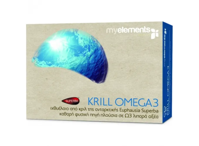 Το συμπλήρωμα διατροφής Krill Omega-3 της mylemements προσφέρει ιχθυέλαιο από το κριλ της Ανταρκτικής Euphasia Superba, μια καθαρή φυσική πηγή, πλούσια σε ωμέγα-3 λιπαρά οξέα.