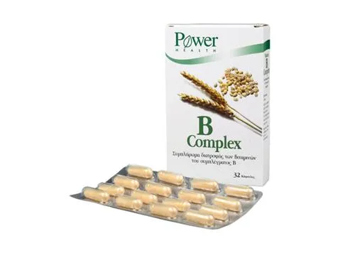 Ενισχυμένος συνδυασμός των βιταμινών του συμπλέγματος B. Υποστηρίζει το νευρικό σύστημα και βοηθά τη μνήμη, το δέρμα και τα μαλλιά.Δοσολογία: Ενήλικες: Λαμβάνετε μια κάψουλα την ημέρα, πριν το φαγητό, ως συμπλήρωμα διατροφής Συστατικά: Ινουλίνη, Ζελατίνη, Νιασίνη, Παντοθενικό ασβέστιο, Στερικό Μαγνήσιο, Βιταμίνη Β2, Βιταμίνη Β6, Βιταμίνη Β1, Φολικό οξύ, Βιοτίνη, Βιταμίνη Β12. Κάθε κάψουλα αποδίδει: Νιασίνη 54 mg Παντοθενικό οξύ 18 mg Βιταμίνη Β2 4,8 mg Βιταμίνη Β6 4,4 mg Βιταμίνη Β1 3,3 mg Φολικό οξύ 0,6 mg Βιταμίνη Β12 4,2 μg .