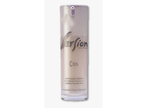 · Διαθέτει μεγάλη διεισδυτικότητα στο δέρμα. Η VERSION διαθέτει τη μοναδική στον κόσμο κορυφαία τεχνολογία σταθεροποίησης του Ασκορβικού Οξέως Έχει ήδη δημιουργήσει το προϊόν VERSION C35% με L-Ασκορβικό Οξύ 35%, υψηλής σταθερότητας, που μπορεί να απορροφηθεί γρήγορα και να χρησιμοποιηθεί από το δέρμα