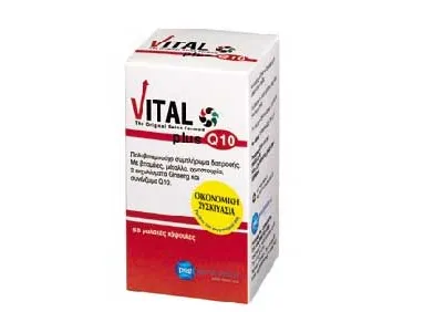 Η λύση: VITAL plus Q10 Το VITAL plus Q10 είναι ένα πλήρες, σύγχρονο και ισορροπηµένο συµπλήρωµα διατροφής το οποίο περιέχει: •12 βιταµίνες •11 µέταλλα και ιχνοστοιχεία •2 εκχυλίσµατα ginseng (Κορεατικό και Σιβηριανό) για σωµατική και νοητική τόνωση •Συνένζυµο Q10 για ενέργεια και προστασία από τις επιθέσεις των ελεύθερων ριζών..