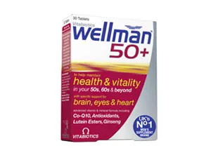 Το συμπλήρωμα διατροφής Wellman 50+ της Vitabiotics αποτελεί μια μοναδική σύνθεση 31 θρεπτικών συστατικών, ειδικά σχεδιασμένη για άντρες άνω των 50 ετών.